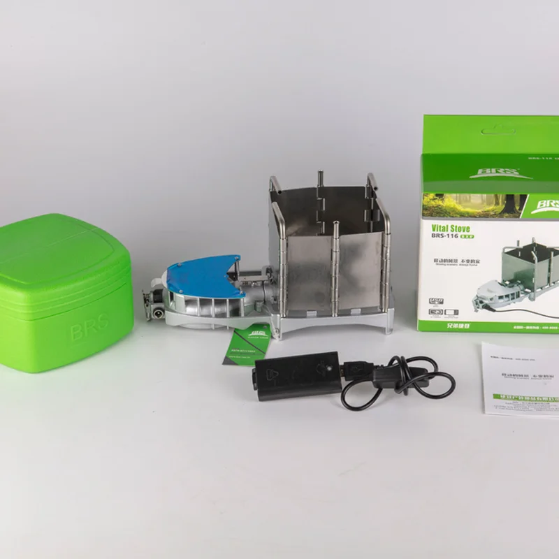 Піч BRS-116 функціонує на природному паливі, вона екологічна та практична. Для нагрівання можна використовувати такі матеріали, як тріски, дрова, тирса, вугілля, деревну стружку. Примусовий наддув працює від двох батарей типу АА або будь-якого powerbank. З використанням грубки готувати на природі легко і просто. Ця модель має високу потужність, яка досягає шести тисяч ват. BRS-116 допоможе закип'ятити один літр води лише за три хвилини максимум.