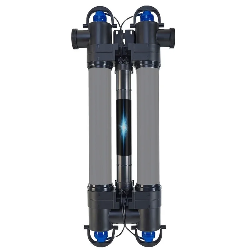 Ультрафіолетова установка Elecro Steriliser UV-C E-PP-110 - ідеальний варіант для басейнів об'ємом до 110 м³. Відмітна особливість моделі - реакторна камера з полімеру ePTFE, відображувальна здатність якого в 3 рази вище, ніж в нержавіючої сталі. Завдяки цьому коефіцієнт віддзеркалення в Elecro Steriliser UV-C E-PP досягає 95%, значно прискорюючи ефективність руйнування забрудників. Відсутність металів в проточній частині камери дозволяє використовувати установку Elecro Steriliser з солоною і морською водою. Потужність: 110 Вт Максимальний протік: 32 000 л/год Термін служби лампи: 9 000 год З'єднання: 50/63 мм