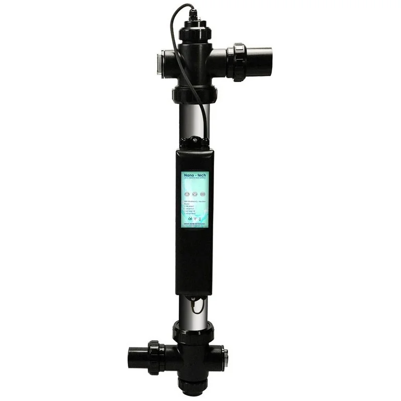 Ультрафіолетова установка Emaux Nano Tech UV75 Standard – унікальна система екологічної дезинфекції та стерилізації води, для SPA і басейнів до 75 м³. Принцип роботи установки заснований на взаємодії UV-C променів з довжиною хвилі 253.7 нм. Така довжина хвилі є потужним бактерицидним засобом. Вона дезактивує ДНК мікроорганізмів, знищуючи їх здатність розмножуватися і викликати хвороби. Дезинфікована вода не має стороннього запаху і присмаку, не дратує очі й не викликає алергічних реакцій. Потужність: 75 ВтМаксимальний протік: 25 000 л/годТермін роботи ламп: 9 000 годинЗ'єднання: 50/63 мм