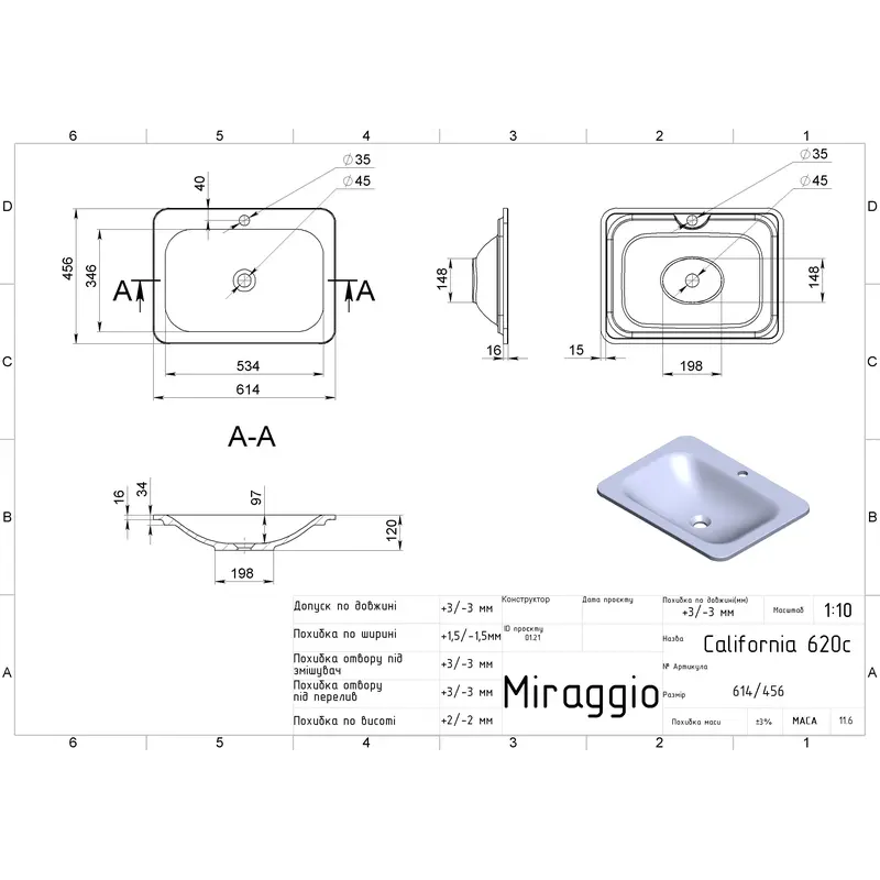Умивальник CALIFORNIA MATT Miraggio