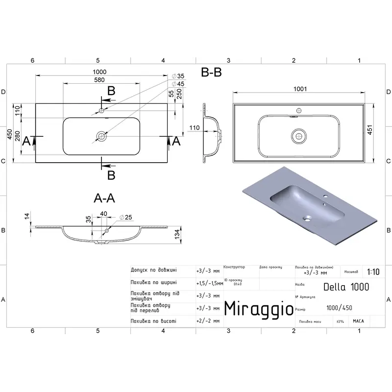 Умивальник DELLA 1000 MIRASTONE BLACK Miraggio