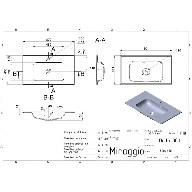 Умивальник DELLA 800 MIRASOFT Miraggio