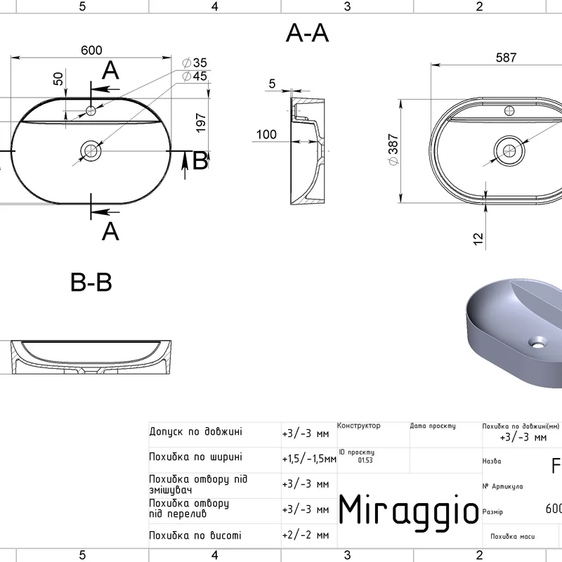 Умивальник FRANCE Miraggio