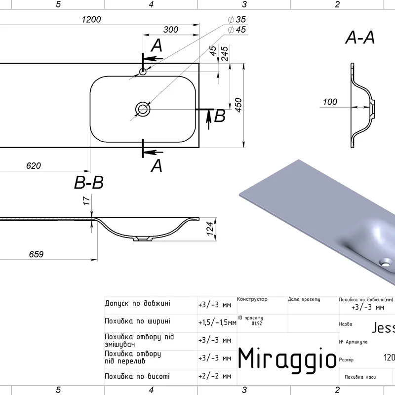 Умивальник JESSEL 1200 R MATT Miraggio