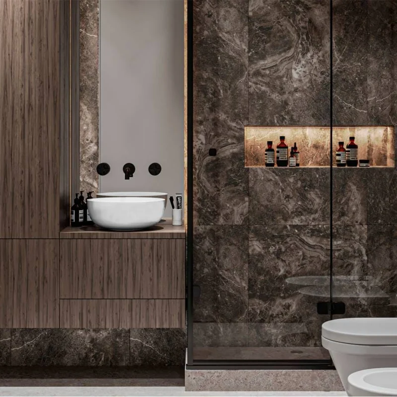 Деякі моделі умивальників можуть бути виготовлені з кварцового піску - в чорному або сірому кольорі. Такі вироби ідеально пасуватимуть ванній кімнаті в стилі лофт.