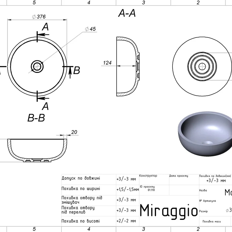 Умивальник MARK 375 Miraggio