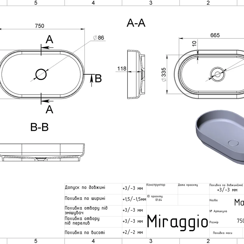 Умивальник MARTA 750 MIRASOFT Miraggio