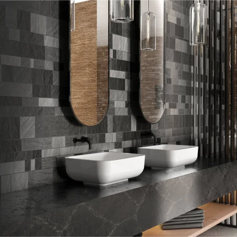 Деякі моделі умивальників можуть бути виготовлені з кварцового піску - в чорному або сірому кольорі. Такі вироби ідеально пасуватимуть ванній кімнаті в стилі лофт.