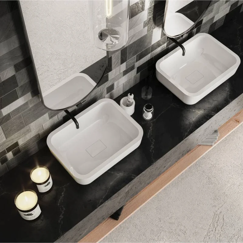 Прямокутна форма раковини гармонійно доповнить дизайн сучасної ванної кімнати.