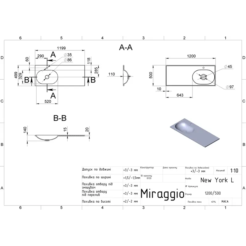 Умивальник NEW YORK L MIRAGGIO зі штучного каменю - це практичне рішення для санвузла дому, готелю чи дачі.