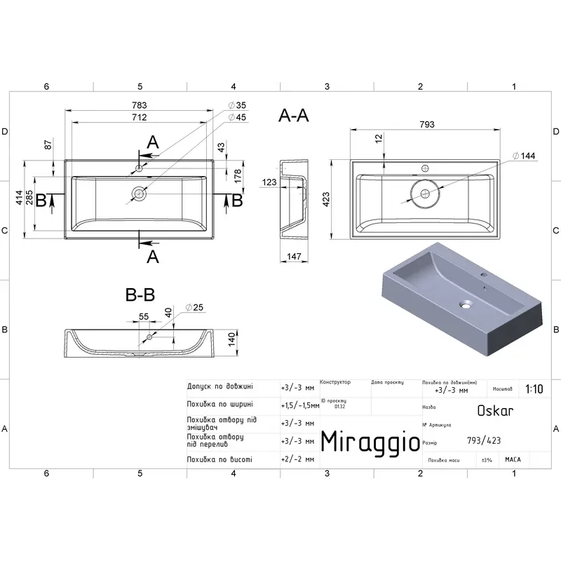 Умивальник OSKAR Miraggio