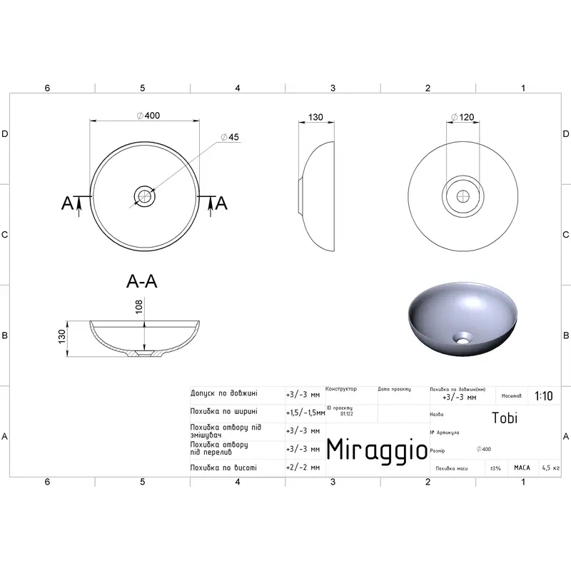 Умивальник TOBI MIRASOFT Miraggio