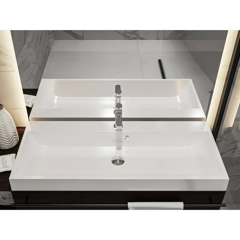 Прямокутна форма раковини гармонійно доповнить дизайн сучасної ванної кімнати.