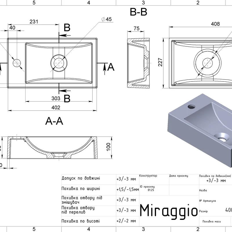 Умивальник FARO MIRASTONE BLACK Miraggio