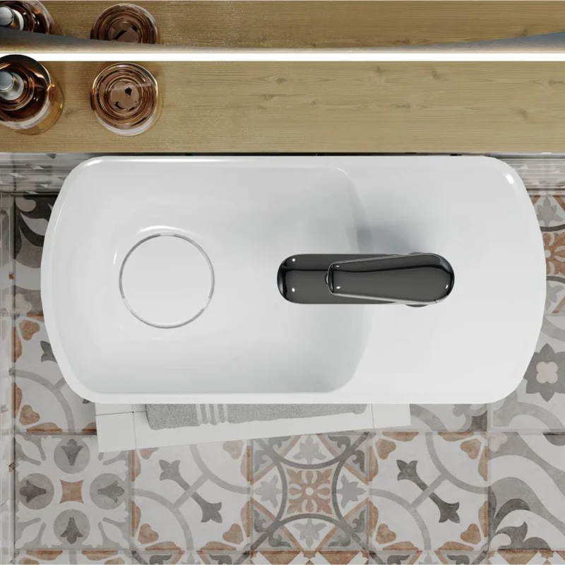 Умивальник має Підвісний тип монтажу, врахуйе че перед замовленням меблів у ванну кімнату.