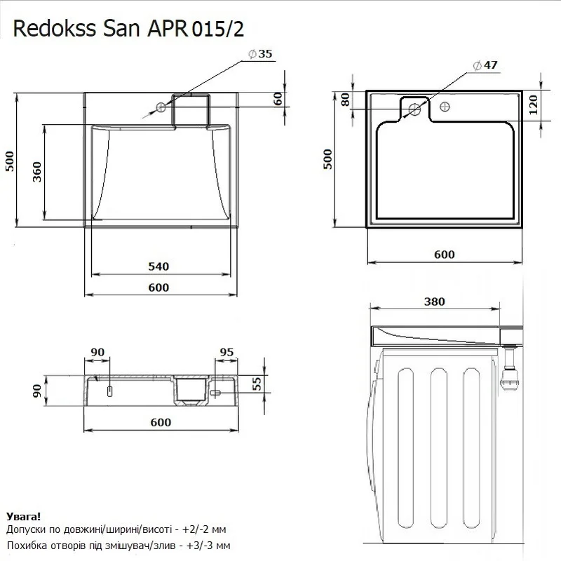 Умивальник на пральну машину акриловий Redokss San FOBOS 60х50см
