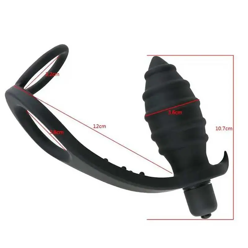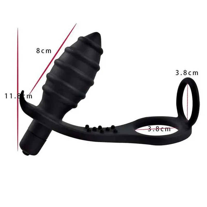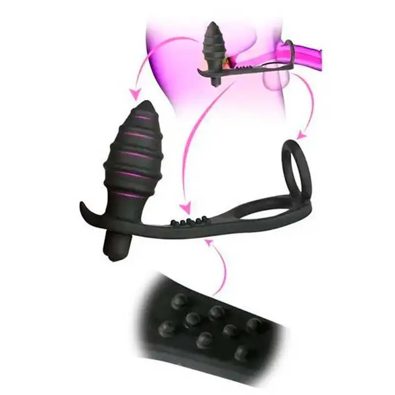 Ерекційне кільце з анальним плагом є прекрасним девайсом для чоловічого задоволення. Ерекційне кільце - багатофункціональний виріб, який використовується для поліпшення якості ерекції та посилення відчуттів від сексуального контакту. Це не просто іграшка з магазину інтимних товарів, а медичне пристосування, застосування якого показано чоловікам, які мають проблеми зі статевою функцією. Кільце стискає статевий член, дає змогу затримати відтік крові та підтримувати ерегований стан органу тривалий час.Також не забуваємо, що своєчасна увага, приділена масажу простати, може запобігти безлічі неприємних хвороб і поліпшити якість сексуального життя чоловіка.Матеріал - силікон, 10 режимів вібрації, Живлення - одна батарейка ААА.