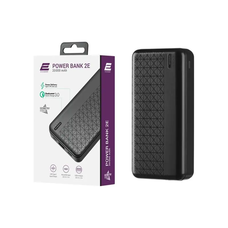 Універсальна мобільна батарея 2E Geometry PD+QC 3.0 20000mAh Black (2E-PB2072PD-BLACK)