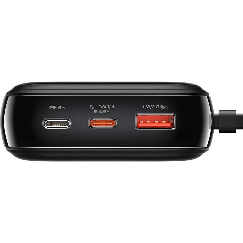 Power Bank Baseus здивує вас своїми матеріалами збирання. Пристрій невеликий і зручний, але ємний - цілих 20000 мАг. Збоку є кабель Lightning, який можна використовувати для підключення мобільного телефону і початку зарядки. Акцент також повинен бути зроблений на ручці (шнурку), яка використовується, наприклад, для перенесення акумулятора живлення або прикріплення його до рюкзака. Пристрій забезпечує швидке заряджання вашого обладнання. Це означає, що ви можете повністю зарядити акумулятор свого мобільного телефону лише за десяток хвилин. На передній частині повербанку розташовано цифровий дисплей. Ви можете використовувати його для перевірки кількості заряду, що залишилася у пристрої. Power Bank Baseus оснащений набором захисних елементів, що захищають ваше обладнання під час заряджання. У ньому є захист від перезаряджання та перегріву. Тому ви можете бути впевнені, що ваш мобільний телефон не зашкодить під час заряджання.