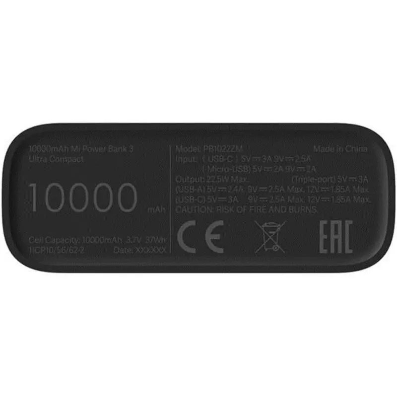 Універсальна мобільна батарея Xiaomi Mi 3 Ultra Compact 22.5W 10000mAh Black (BHR4412GL)