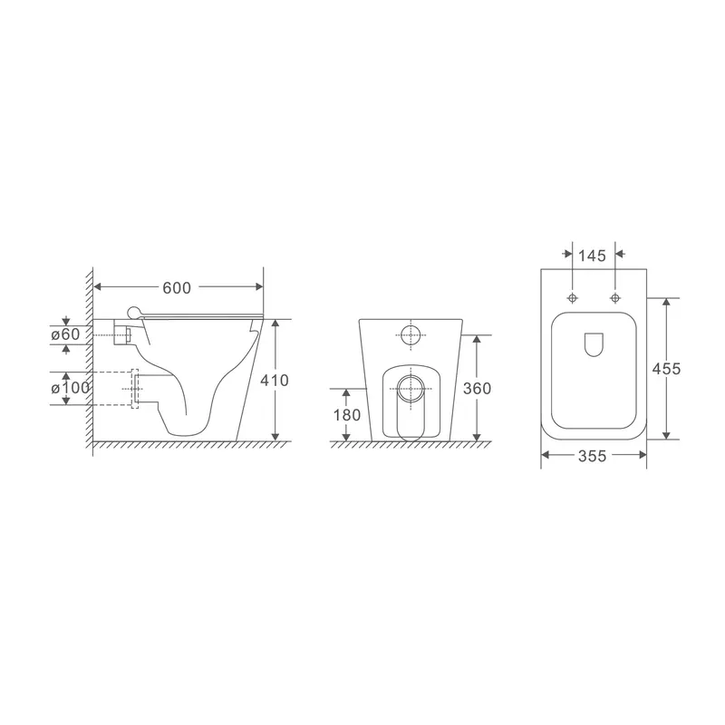 Унитаз напольный безбачковой Mixxus Premium QUADRO-0701-R 600х355х410mm, система смыва RIMLESS (MP6