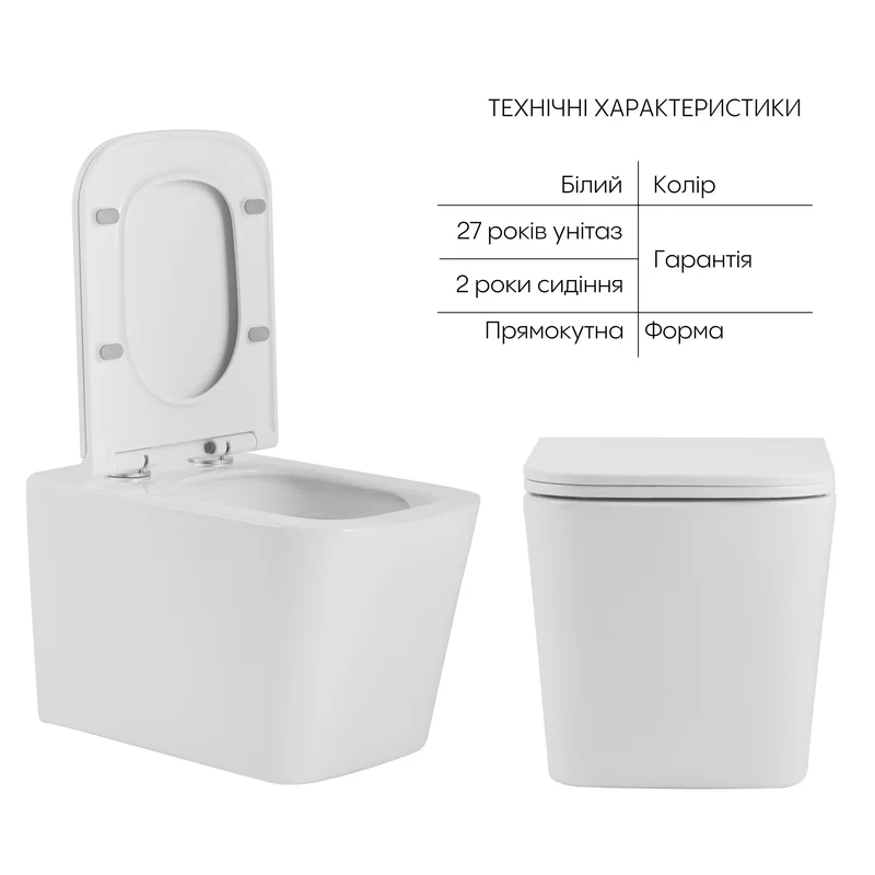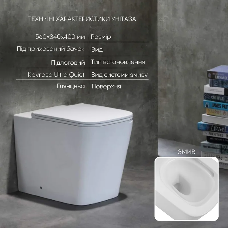 Унітаз підлоговий Qtap Tern безбачковий Ultra Quiet безобідковий безобідковий з сидінням Soft-close WHITE QT17223303AW