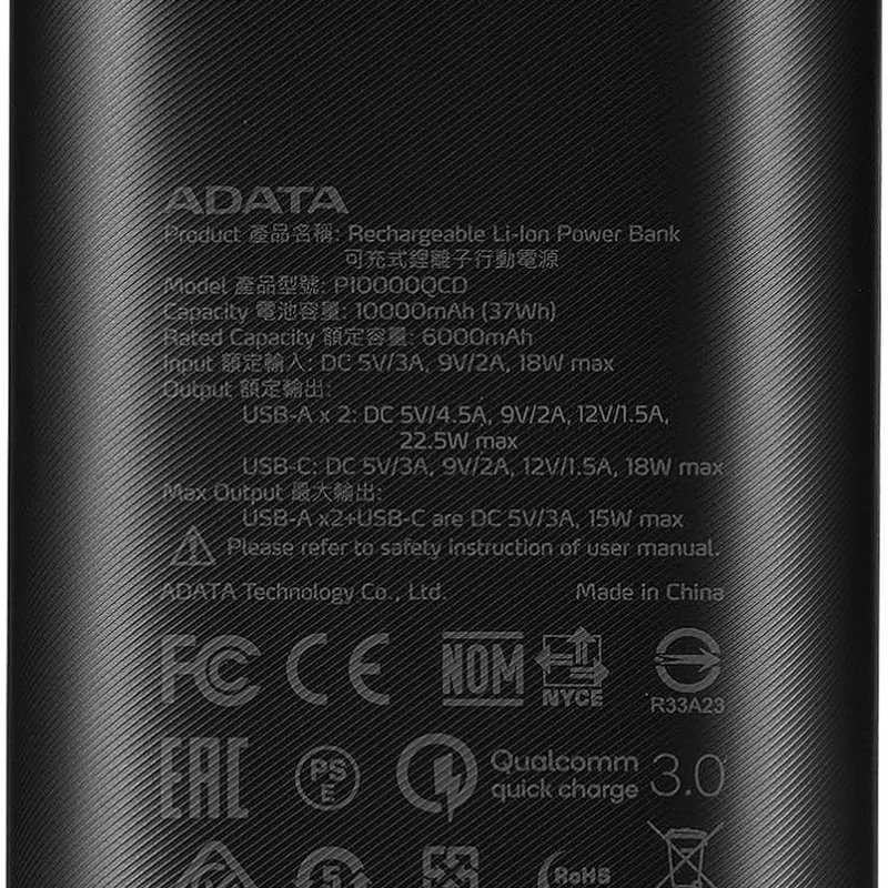 Універсальна мобільна батарея A-DATA P10000QCD 10000mAh Black (AP10000QCD-DGT-CBK)