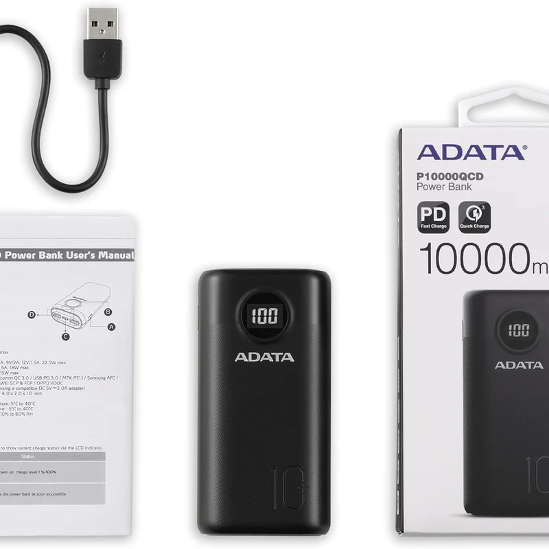 Зменште час очікування за допомогою блоку живлення ADATA P10000QCD! Завдяки великій батареї ємністю 10 000 мАг, компактному форм-фактору та підтримці Qualcomm QC 3.0 і USB Power Delivery 3.0, P10000QCD зарядить ваші пристрої в найкоротші терміни! Підтримує Qualcomm QC 3.0 і USB PD 3.0 Незалежно від того, чи використовують ваші пристрої Qualcomm QC 3.0 або USB PD 3.0, P10000QCD задовольнить ваші потреби швидкої зарядки! Зарядіть три відразу P10000QCD має два порти USB-A і один порт USB-C із загальною вихідною потужністю до 15 Вт, що дозволяє заряджати три пристрої одночасно. Зручність двонаправленої зарядки завдяки USB-C Порт USB Type-C P10000QCD забезпечує легку зарядку. Порт Type-C підтримує двонаправлену зарядку, що означає, що вам знадобиться лише один кабель для зарядки P10000QCD і всіх ваших пристроїв Type-C, від мобільного телефону до ігрової консолі. * Кабель для зарядки USB-A до USB-C входить в комплект. Дисплей усуває роботу вгадування P10000QCD оснащений цифровим дисплеєм, який показує точний стан Power Bank. Незалежно від того, чи заряджаєте ви один пристрій чи три одночасно, ви точно знатимете, скільки енергії залишилося! Багатоланцюговий захист P10000QCD має інтелектуальну внутрішню схему, яка захищає від перезаряду, перерозряду, перегріву, короткого замикання, перенапруги та переструму, забезпечуючи вам повний спокій.