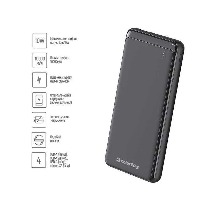 Універсальна мобільна батарея ColorWay Slim 10000mAh Black (CW-PB100LPF2BK)