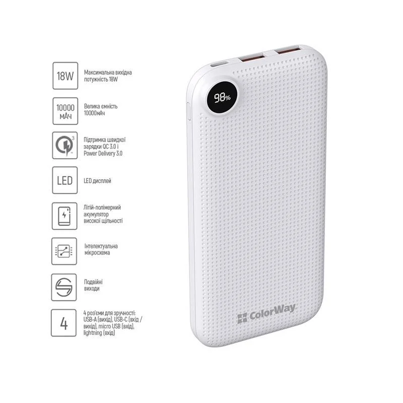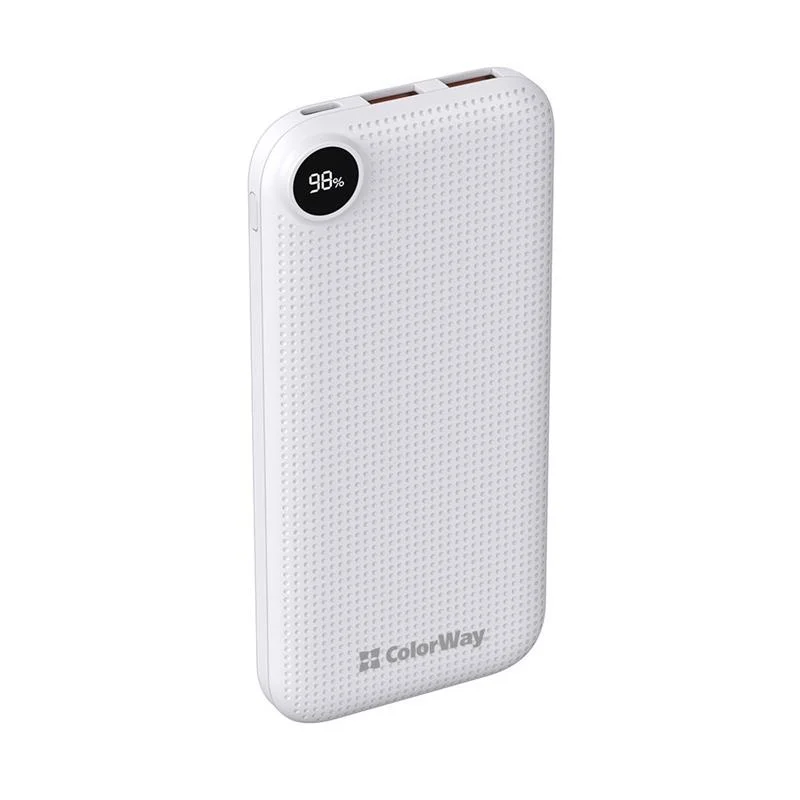 Універсальна мобільна батарея ColorWay Slim, LCD 10000mAh White (CW-PB100LPH2WT-D)