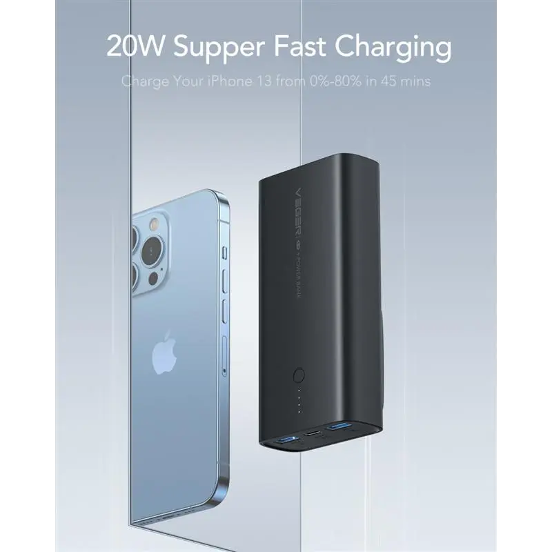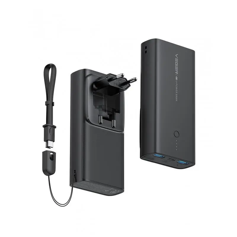 Зовнішній акумулятор VEGER ACE100 Built-in EU Plug Power Bank PD 20W (10000mAh) – незвичайний, на перший погляд, повербанк, який має виделку європейського стандарту. Однак він виконує стандартний функціонал і полегшує заповнення свого заряду, пропонуючи користувачеві зарядити його прямо від розетки, не використовуючи кабель. Пристрій зможе зарядити смартфон, планшет чи бездротові навушники. На додаток йде кабель, який кріпиться на корпусі за допомогою шнурка.