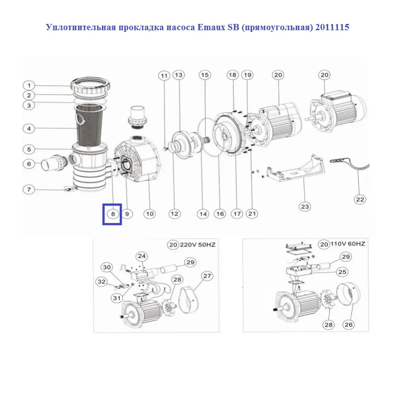 Ущільнююча прокладка насоса Emaux SB (прямокутна) 2011115.
