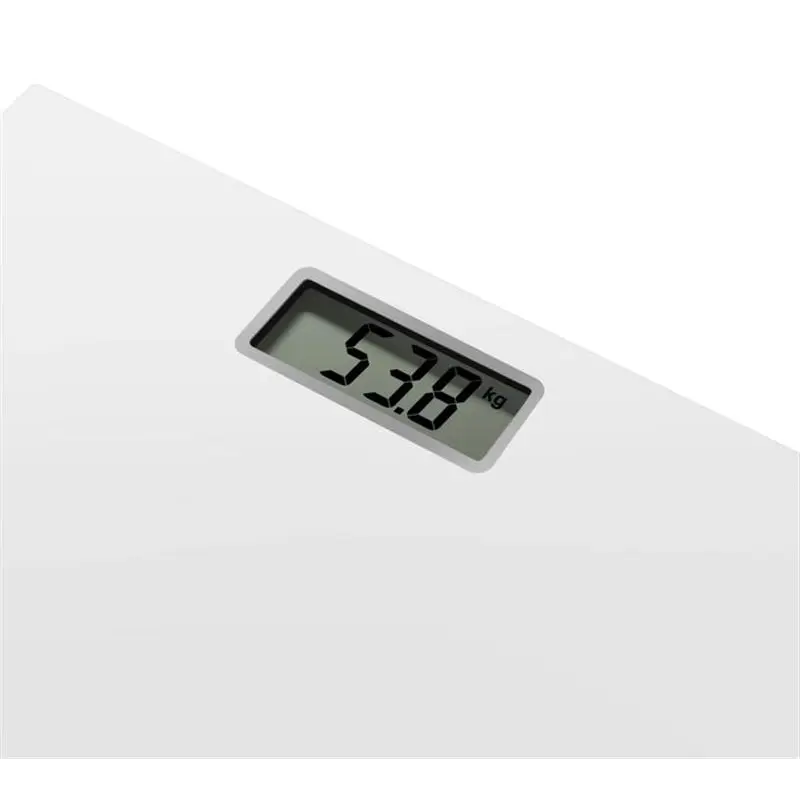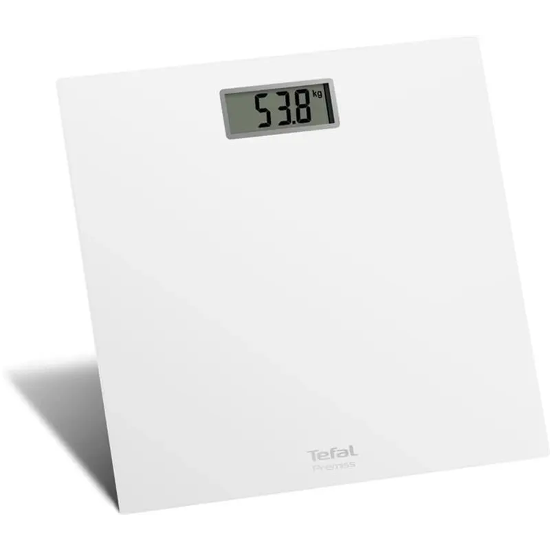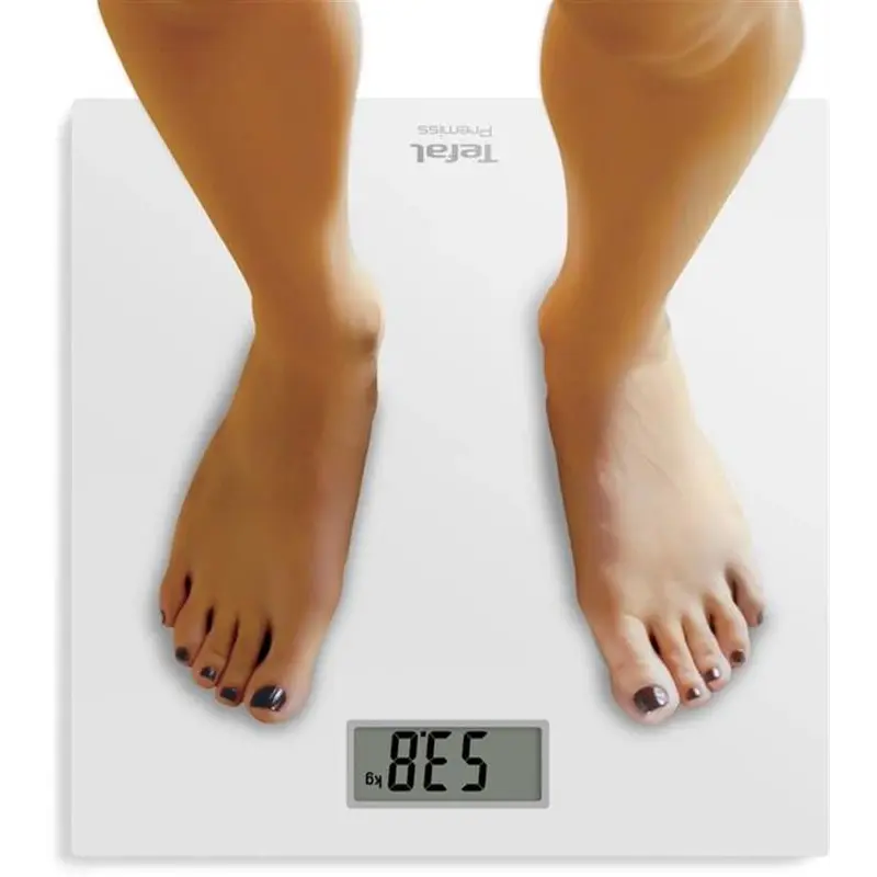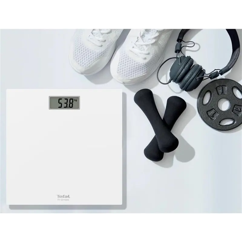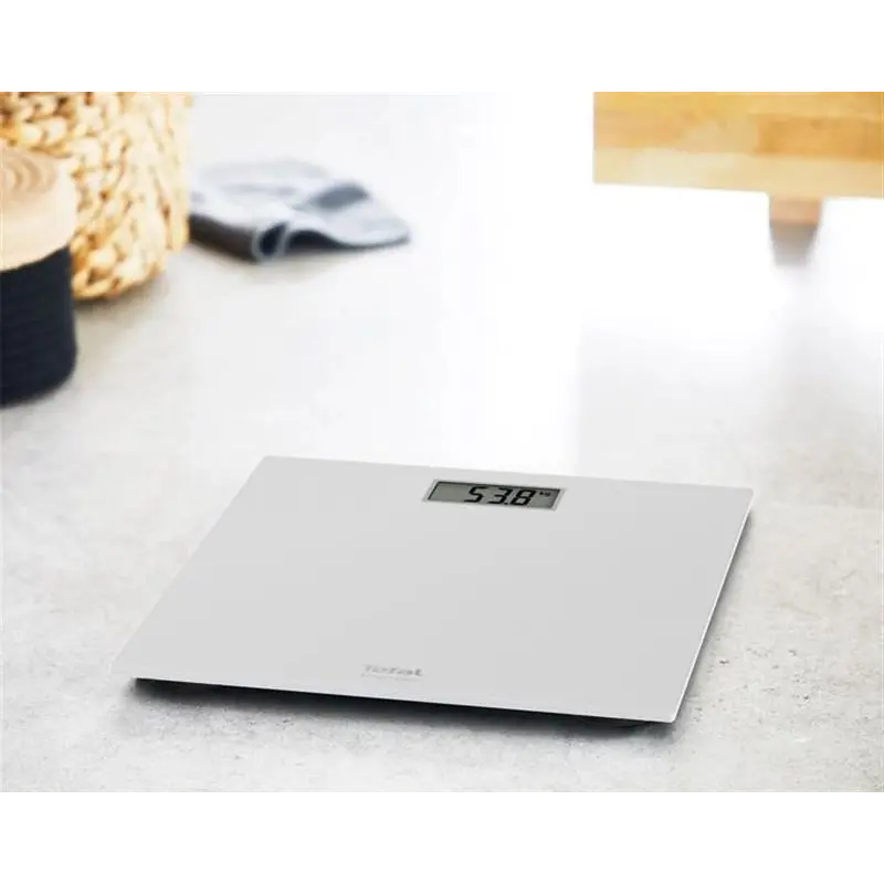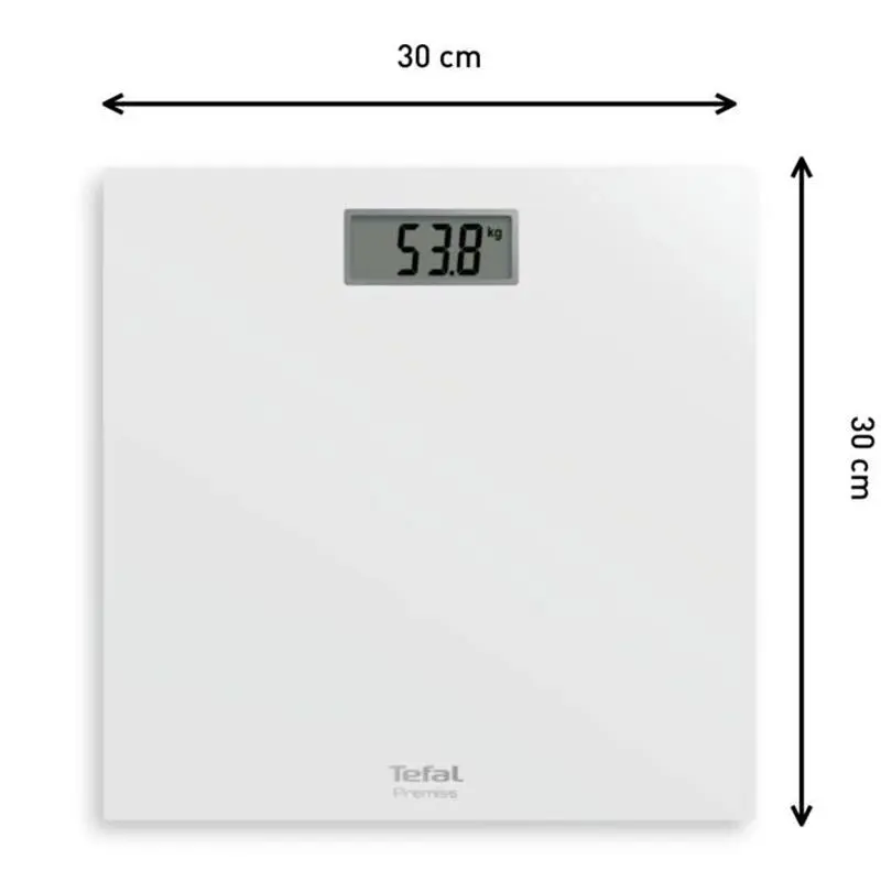 Tefal Premiss - це зручні та прості у використанні цифрові ваги для ванної кімнати. Завдяки дуже великій платформі та зручному РК-екрану перевірка вашої ваги ще ніколи не була такою простою! Ці електронні ваги витримують навантаження до 150 кг із точною шкалою 100 г та ультратонким дизайном, які легко зберігаються. Функція автоматичного включення та вимикання забезпечують додаткову легкість – просто встаньте на платформу, а ваги зроблять все інше (на ваш вибір у кілограмах чи фунтах). Зручна простота Ваги для підлоги Tefal PP1401V0 - це відмінна модель від відомого бренду. Незважаючи на базовий набір характеристик, вони стануть чудовим вибором. Адже ціна на них справді доступна, а якість виготовлення повною мірою відповідає жорстким європейським стандартам. Сучасний дизайн Зовнішність терезів Tefal PP1401V0 порадує естетів. Короткий корпус зі скляною платформою виконаний у дусі мінімалізму. Біла поверхня глянсова й акуратна. Вона створює відчуття легкості та легкості. Тому мимоволі здається, що з такими вагами зайва вага йтиме швидше! Тонка конструкція корпусу дозволяє зручно зберігати ваги навіть під шафкою. Товщина складає всього 22 міліметри. Міцність конструкції Платформа із загартованого скла дозволяє моделі Tefal PP1401V0 витримувати масу до 150 кілограмів. Найчастіше цього більш ніж достатньо. Крок вимірювання становить 100 г. Великий розмір екрана чітко відображає зафіксовану вагу. Платформа має розміри 30 х 30 см, причому цифри на екранчику мають висоту 23 мм. Тому вони легко помітні з висоти людського зросту. Просте зважування Щоб скористатися вагами Tefal PP1401V0, не потрібно робити жодних додаткових дій. Достатньо просто стати на платформу, щоб ваги ввімкнулися. З опцій вам доступна метрична та британська системи одиниць вимірювання. Щойно платформа ваги стабілізується, на екрані зафіксується показник ваги. Після того, як ви зійдете з платформи, ваги автоматично вимикаються. Відбувається це досить швидко протягом 5 секунд. Тому батарейок вистачить надовго!