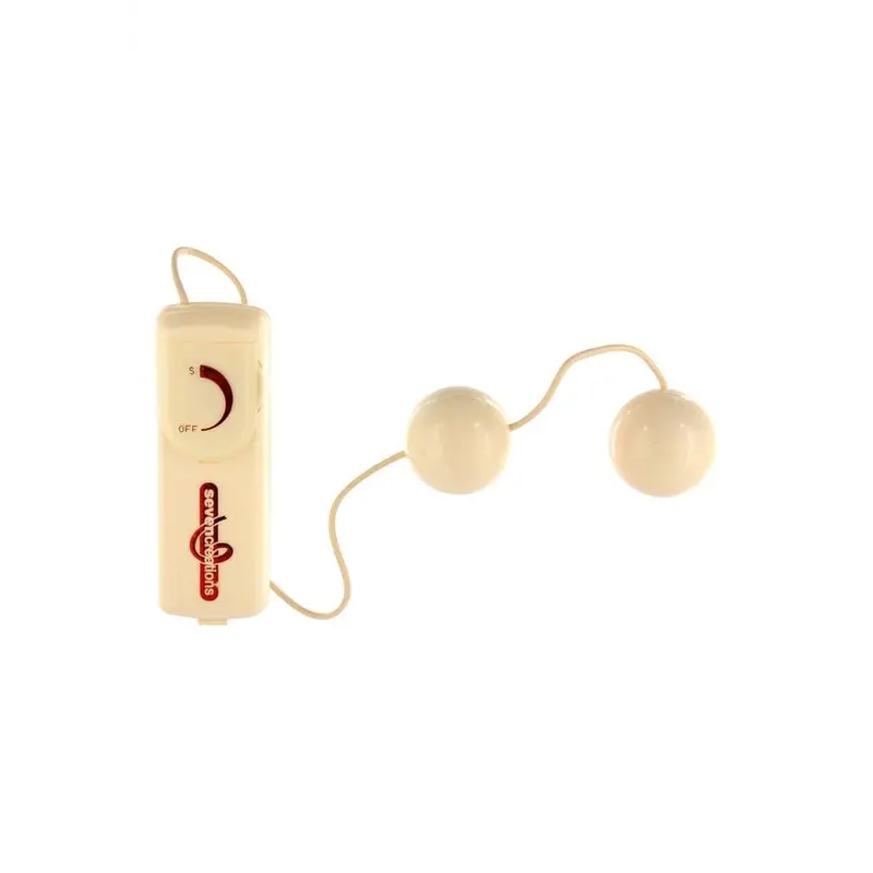 Вагинальные шарики, белого цвета, оснащены вибратором для создания особо приятных ощущений.