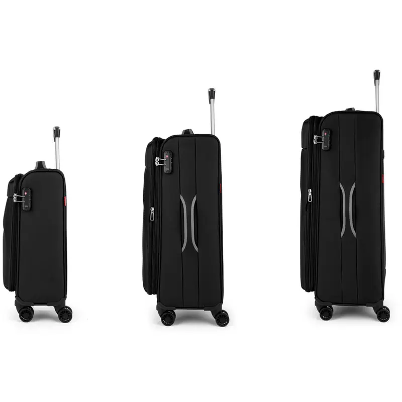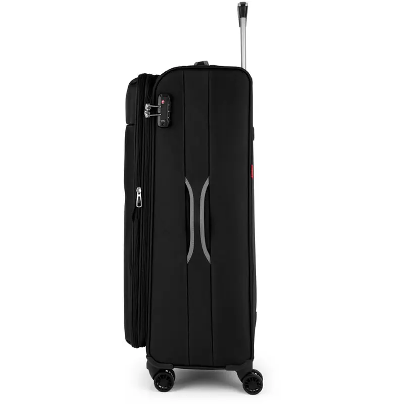 Валіза оснащена чотирма повноповоротними колесами з можливістю незалежного розвороту кожного колеса на 360°. Системою передбачено рівномірний перерозподіл навантаження на кожне колесо, що у свою чергу сприяє плавному руху та маневреності валізи, докладаючи при цьому мінімум зусиль. Колеса виготовлені із високотемпературного термопластичного поліуретану (TPU). Матеріал має міцність порівнянну з пластиком, гнучкістю силікону, а також має підвищену стійкість до перепадів температур. Відмінною особливістю коліс із TPU матеріалу є зниження шуму до мінімуму під час руху валізи по нерівній поверхні. Завдяки стійкості до стирання матеріал коліс відрізняється тривалим терміном експлуатації.