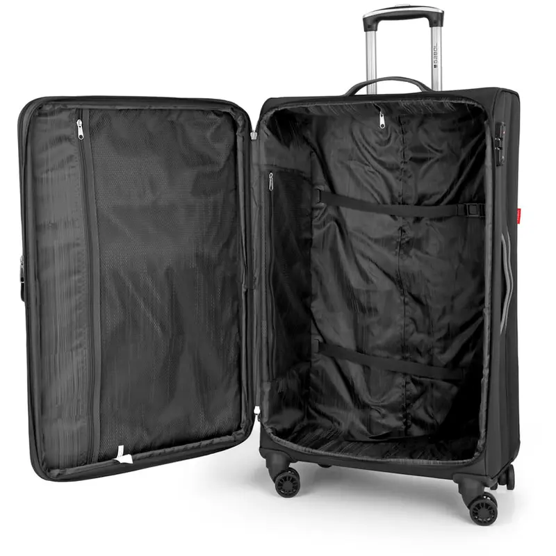 Валіза Gabol серії Zambia оснащена кодовим замком TSA системи для підвищення безпеки. Каркас дна легкий та міцний. На фасадній частині розміщено кишеню на блискавці. Усередині основне відділення має ремені для фіксації речей. Валіза легка, маневрена і зручна для транспортування. Тильна сторона валізи містить ідентифікатор, що полегшує її пошук у разі втрати.