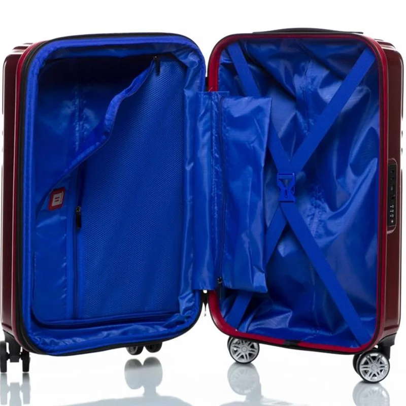 Корпус валізи виготовлений зі 100% полікарбонату, що робить його ударостійким і довговічним; Дизайн ручок і кодового замка валізи виконаний в максимально прихованому стилі, для запобігання пошкодження їх під час транспортування, в різних видах транспорту. Ісередині: 2 відділення: одне з фіксуючими ременями для одягу, друге закривається текстильною перегородкою на блискавку; 1 кишеня на блискавці (сітка); Зовні: Висувна ручка з кнопковим фіксатором; Зверху розташована переносна ручка; Міцна і витривала 4-х колісна система подвійних коліс з радіусом обертання 360 градусів дозволяє переміщати багаж, не докладаючи зусиль; Вбудований кодовий замок з системою TSA.