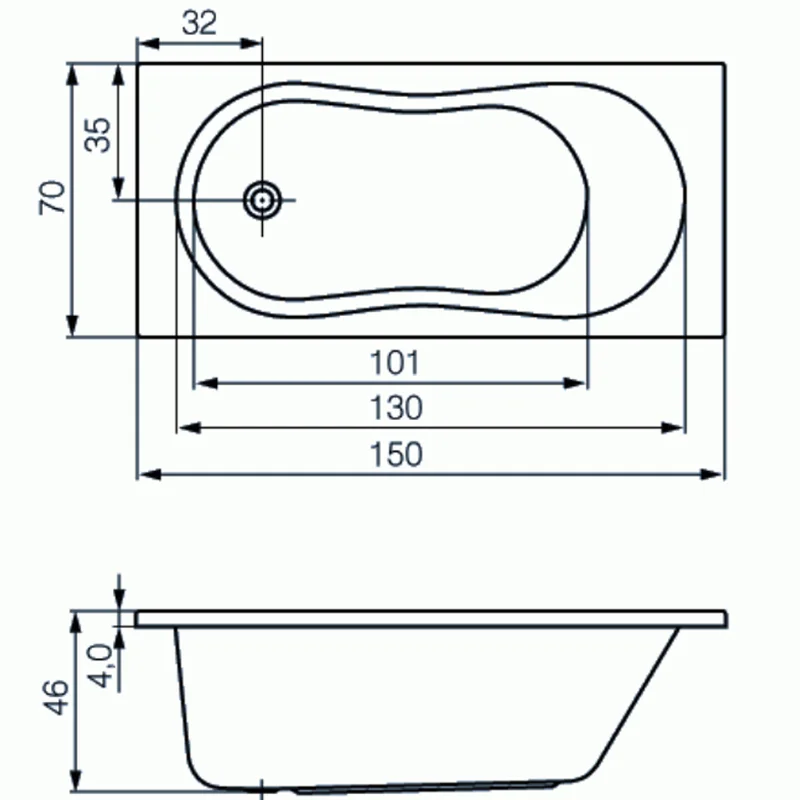 Ванна ABS CERSANIT NIKE 150х70 + ножки Тип 4