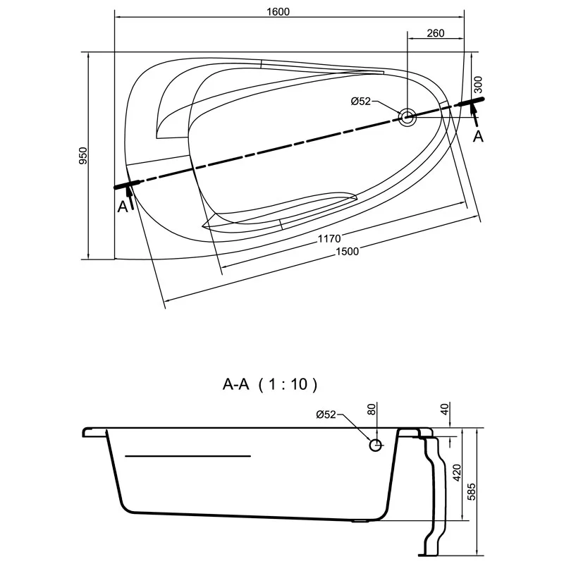 Ванна акрил. JOANNA NEW 160х95, ліва+НІЖКИ ТИП 1,4 Cersanit