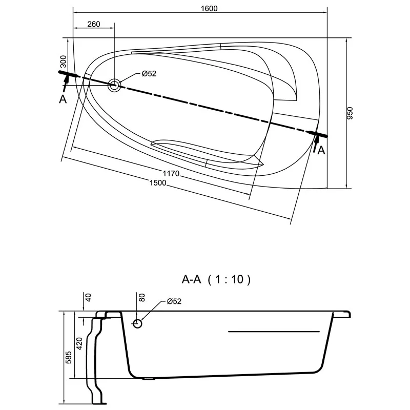 Ванна акрил. JOANNA NEW 160х95, права+НІЖКИ ТИП 1,4 Cersanit