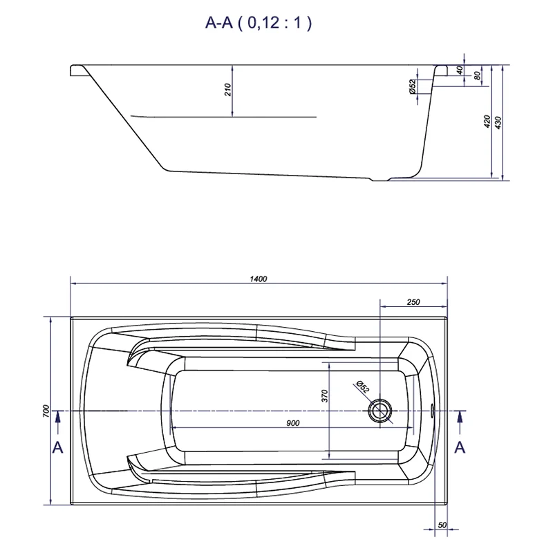 Ванна акрил. LANA 140х70+НІЖКИ ТИП 1 Cersanit