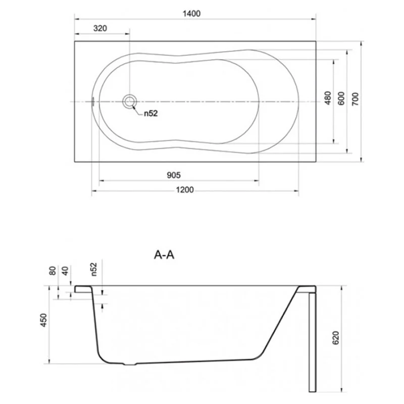 Ванна акрил. MITO RED 140х70+НІЖКИ ТИП 1 Cersanit