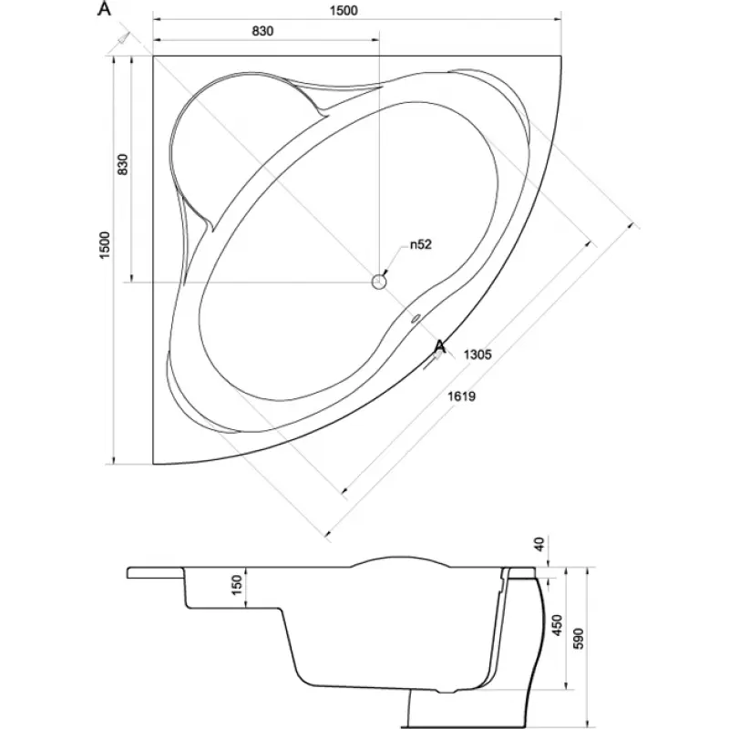 Ванна акрил. VENUS 150х150+НІЖКИ ТИП 6 Cersanit