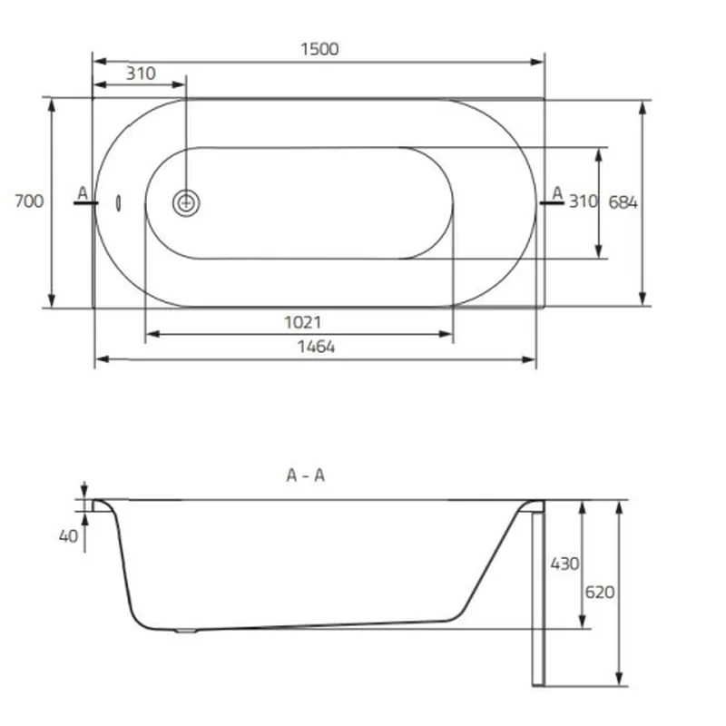 Ванна акриловая CERSANIT OCTAVIA 150х70