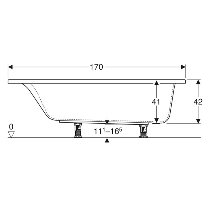 Ванна Geberit Selnova Square 170х75 выполнена в классической прямоугольной форме.