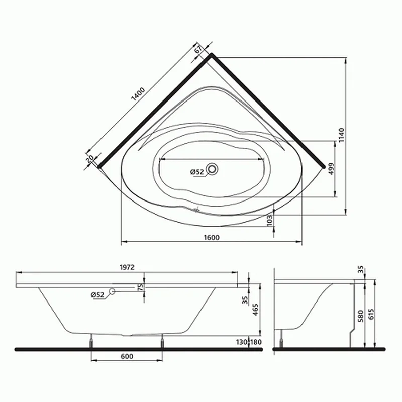 Ванна акриловая KOLO Inspiration 140x140 с ножками SN8/SN14 (XWN3040000)
