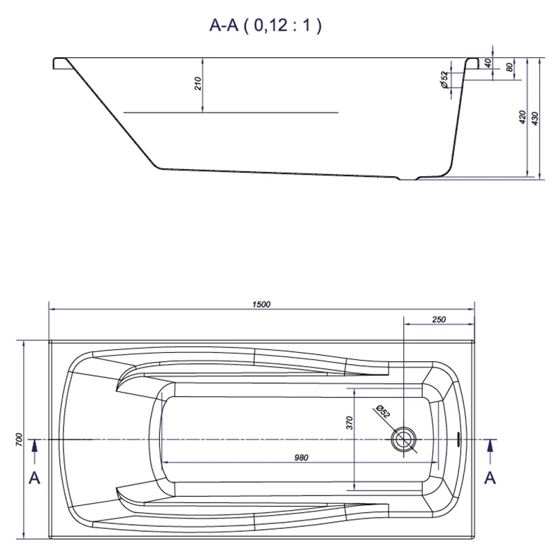 Ванна акрил. LANA 150х70+НІЖКИ ТИП 1 Cersanit