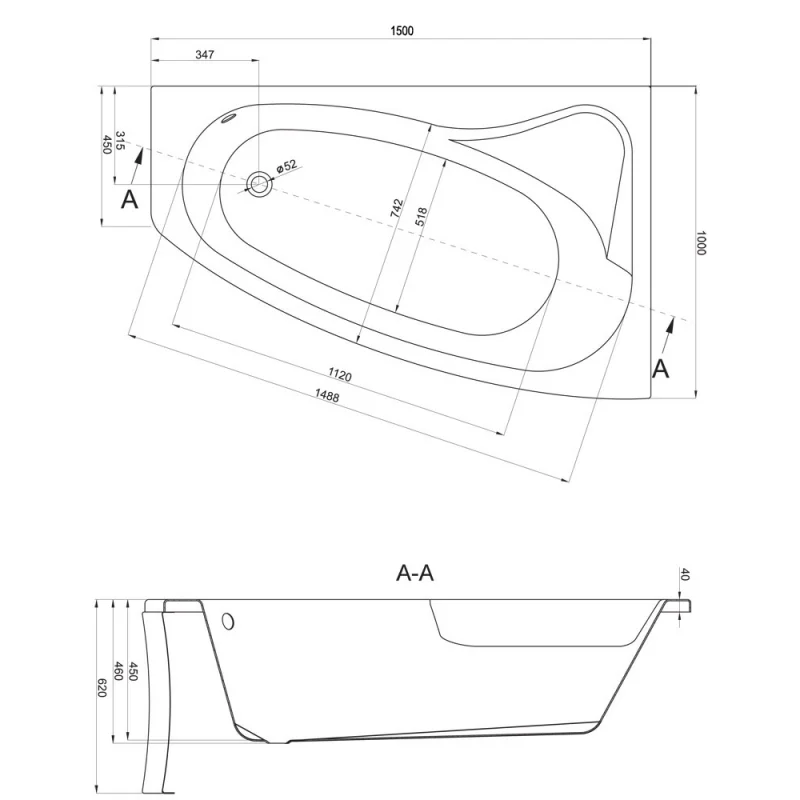 Ванна акрил. SICILIA NEW 150х100 права+НІЖКИ ТИП 1 Cersanit