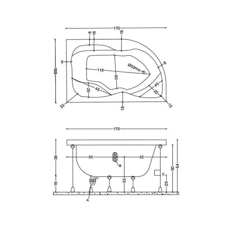 асиметрична акрилова ванна Tuana 170×100 L (ліва сторона), виробництва Туреччина: Основні характеристики: Розміри: 170×100 см — асиметрична форма з лівим розворотом, ідеальна для кутового монтажу. Матеріал: Санітарний акрил — гладкий, теплий на дотик, стійкий до подряпин і знебарвлення. Глибина: ~45-52 см — комфортна для прийому ванни. Товщина акрилу: 4-6 мм — забезпечує міцність і теплоізоляцію. Комплектація: Ніжки — регульовані, для стабільного встановлення Передня панель — декоративна, приховує монтажні елементи Переваги: Асиметрична форма — економить простір, зберігаючи комфорт Теплоізоляція — вода довше залишається теплою Ця модель — чудовий вибір для тих, хто шукає стильну, простору та функціональну ванну з нестандартним дизайном. Гігієнічність — гладка поверхня легко очищується Європейська якість — турецьке виробництво з сучасними стандартами Готова до монтажу — усе необхідне в комплекті