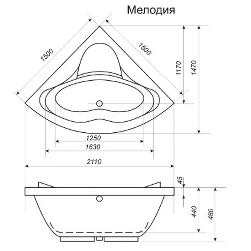 Ванна акриловая BISANTE Мелодия 1500х1500